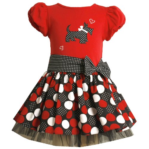 Bonnie Jean TODDLERS 2T-4T RED BLACK WHITE SCOTTY APPLIQUE DOTTY-DOT DROP WAIST Special Occasion Girl Party Dress Review