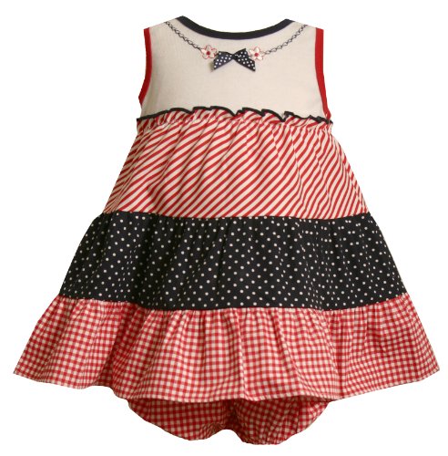 Bonnie Jean Baby/NEWBORN 3M-9M 2-Piece RED TIERED DOTS STRIPES CHECK PRINT Girl Party Dress Review