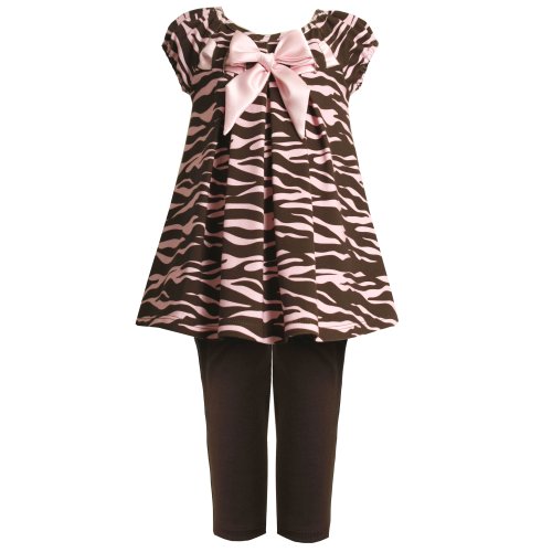 Bonnie Jean TODDLERS 2T-4T 2-Piece BROWN PINK PULL-THRU RIBBON ZEBRA ANIMAL PRINT KNIT Dress and Legging/Pants Outfit Set Review