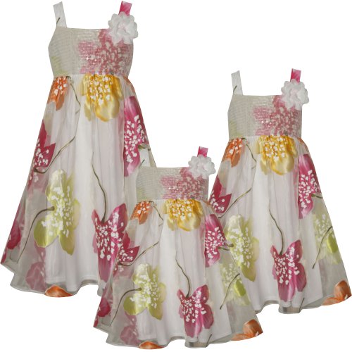 Bonnie Jean TODDLERS 2T-4T IVORY MULTI SEQUIN BODICE BIG FLOWERS ORGANZA OVERLAY Special Occasion Wedding Flower Girl Party Dress Feature