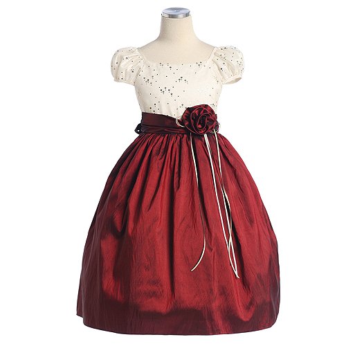 Girls Burgundy Ivory Glitter Mesh Christmas Holiday Pageant Dress 6M-12 Review