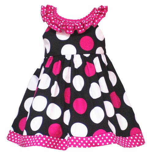 Rare Editions INFANT 12M-24M FUCHSIA-PINK BLACK WHITE TWIN DOT RUFFLE NECKLINE Spring Summer Flower Girl Birthday Party Dress Review