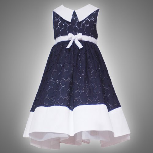 Rare Editions Little Girl 4-6X NAVY-BLUE WHITE EYELET BOW FRONT NAUTICAL RESORT Special Occasion Girl Party Dress Review