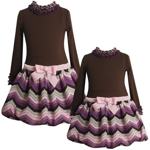 Bonnie Jean TODDLERS 2T-4T BROWN PURPLE PINK FLAMESTITCH BUBBLE KNIT Special Occasion Flower Girl Holiday Party Dress Review