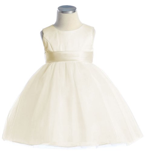 New Satin & Tulle Flower Girl Dress (Ivory or White Alternate Satin Waist Sash Colors) 6M to 24M Review