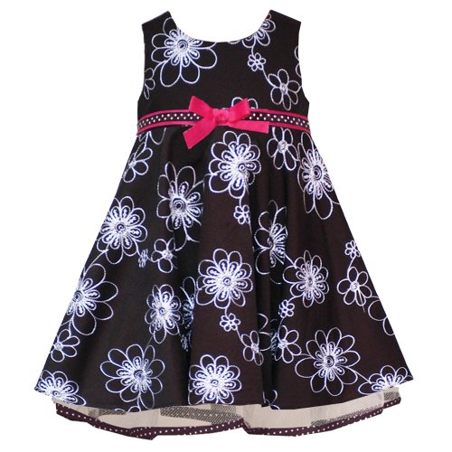Rare Editions TODDLERS 2T-4T BROWN WHITE CORAL-PINK BOW FRONT FLORAL EMBROIDERED Special Occasion Wedding Flower Girl Party Dress Review
