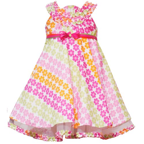 Rare Editions TODDLERS 2T-4T FUCHSIA-PINK MULTI FLORAL PRINT RUFFLE NECKLINE Special Occasion Wedding Flower Girl Easter Party Dress Review