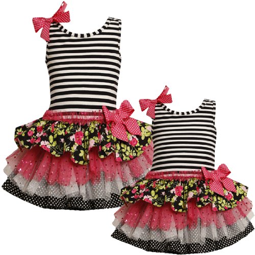 Bonnie Jean TODDLERS 2T-4T FUCHSIA-PINK BLACK WHITE STRIPED MULTI TIERED MIX-PRINT DROP WAIST Special Occasion Girl Party Dress Review