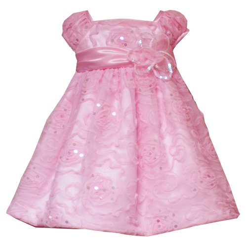 Rare Editions INFANT/TODDLER 12M-4T PINK SEQUIN ROSETTE SOUTACHE MESH OVERLAY Special Occasion Wedding Flower Girl Party Dress Review