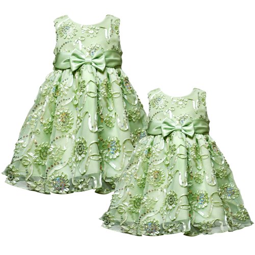 Rare Editions TODDLERS 2T-4T HONEYDEW-GREEN SEQUINED SOUTACHE MESH OVERLAY Special Occasion Wedding Flower Girl Party Dress Review