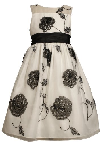 Bonnie Jean TODDLERS 2T-4T BLACK WHITE BONAZ 'Rose Stem' RIBBON ORGANZA OVERLAY Special Occasion Flower Girl Easter Party Dress. Feature